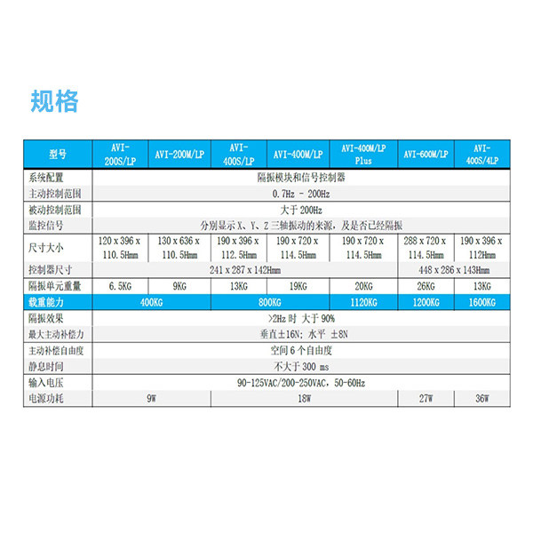 | 优于被动系统 | 无低频共振 | 振动恢复时间迅速(<10MS) | 反馈控制(无需校准) |